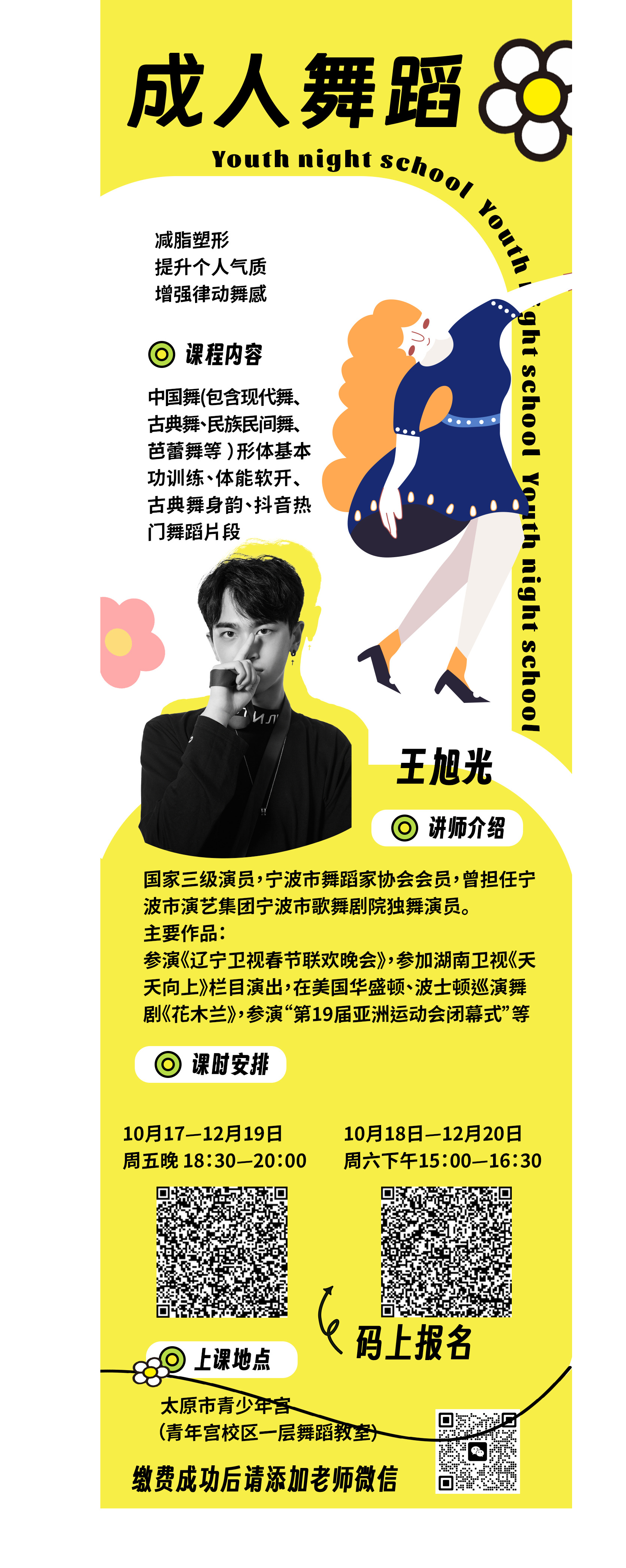 太原市青少年宫青年夜校,期待与你在夜晚相遇,一起发现更好的自己! 特别提示: 报名时,请慎重选择所学课程,一旦缴费成功无法退费或转班,谢谢您的配合!