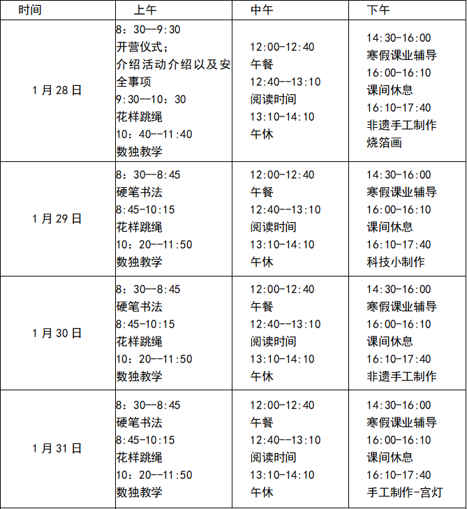 (学校考试后第二天开营,如遇学校返校日,调整课程)