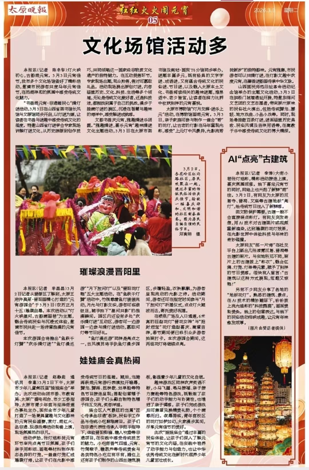 人民网:山西太原:“娃娃庙会”迎元宵