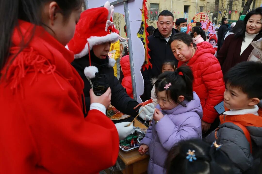匠心传承品非遗的庙会区更是人头攒动、热闹非凡!从太原市青少年宫门口右手步道至活动楼A区、B区门口步道,民俗手工制作区和传统小吃街琳琅满目,孩子们在非遗传承人手把手指导下,体验晋阳钩编的指尖温暖,惊叹糖画以勺为笔、以糖为墨的神奇,欣赏糖人吹塑的立体生动,感受晋阳剪纸粗犷中的细腻,揉捏晋阳彩泥塑造可爱形象,探索板笔书画字中有画的独特魅力,品味果酱画带来的舌尖美学,每一项非遗技艺都在孩子们心中种下传统文化的种子。